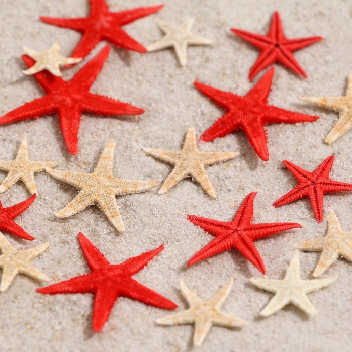Набор натуральных морских звезд, 1,5 - 2,5 см, 20 шт, красные - белые
