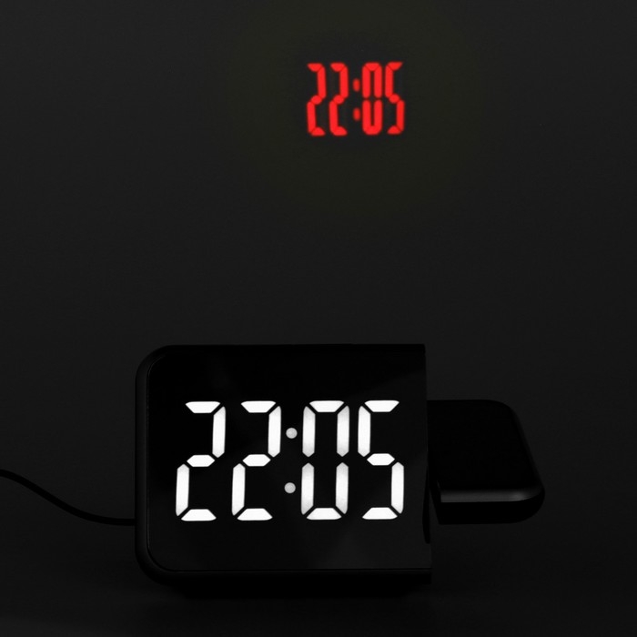 Часы-будильник электронные настольные с проекцией, USB, 18.4 х 7.5 см, красная цифра