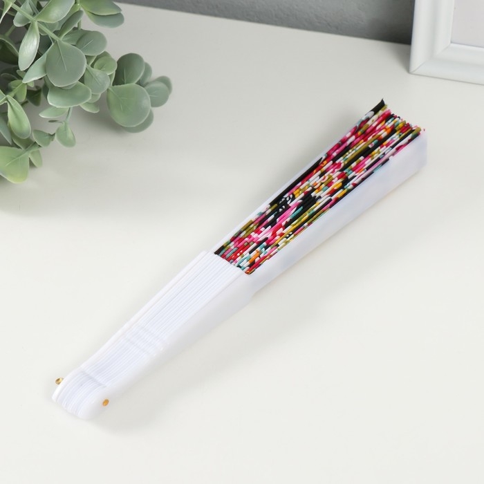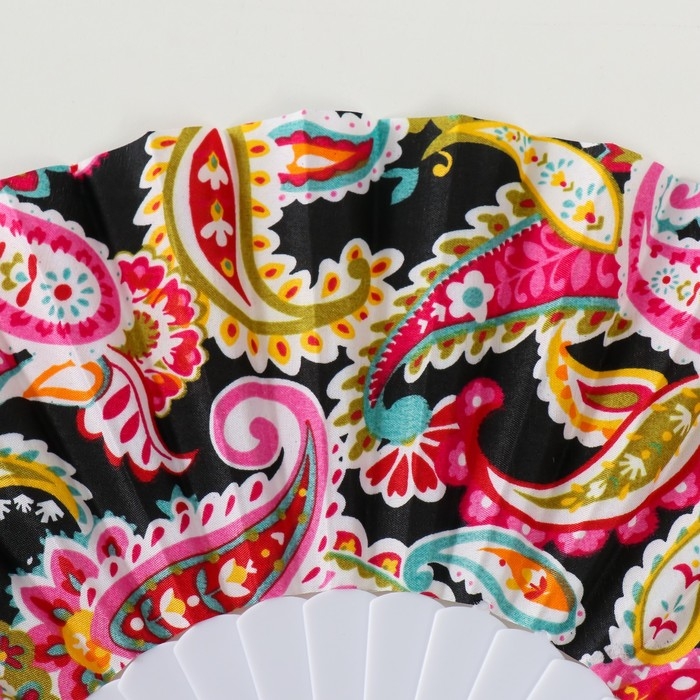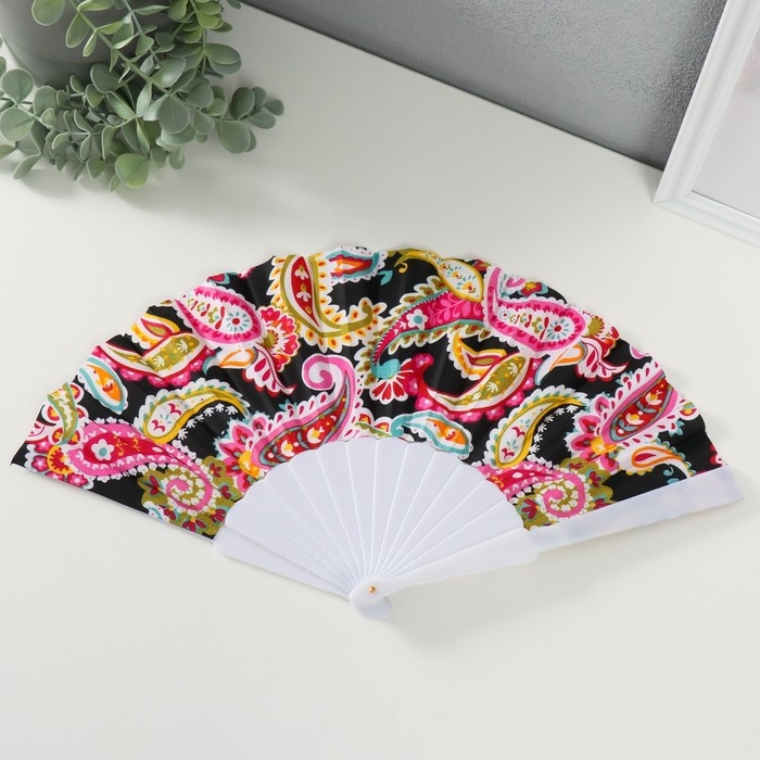 Веер пластик, текстиль "Узор: китайские огурцы" МИКС 23 см
