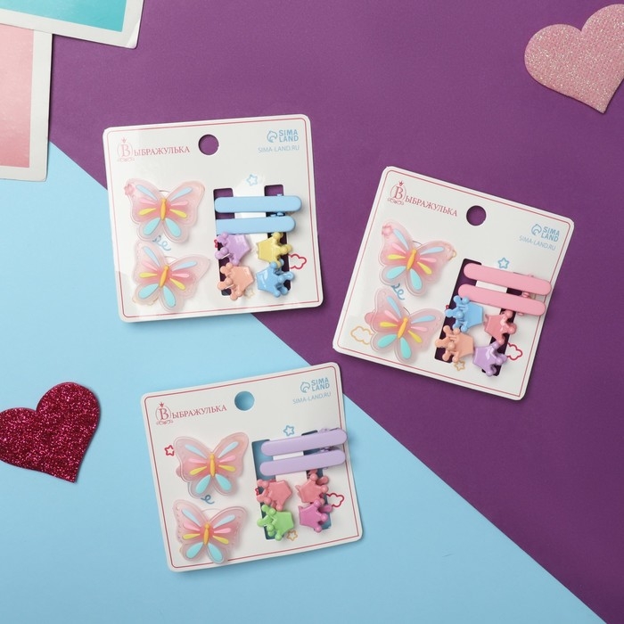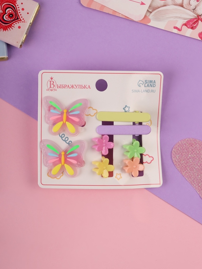 Набор для волос "Крошечка" (2 резинки, 2 зажима, 4 крабика) бабочка