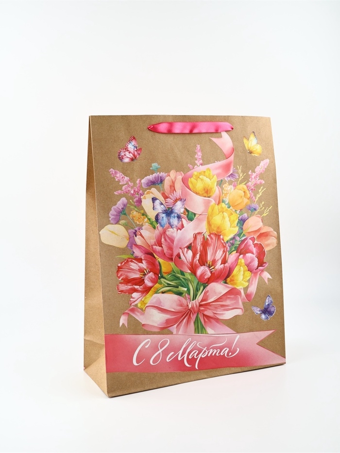 Пакет подарочный крафтовый «8 марта», L 31 х 11.5 х 40 см