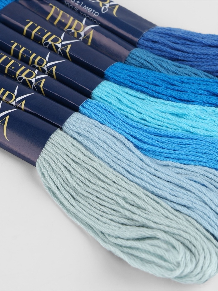 Набор ниток мулине хлопок 8±1м (наб 7шт цена за наб) cпектр синий TR