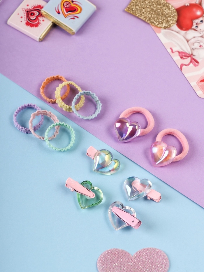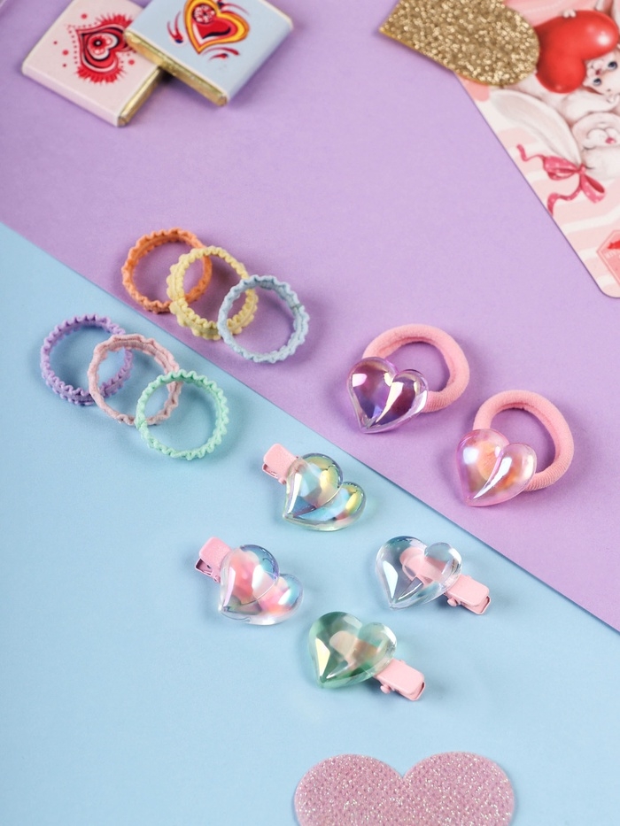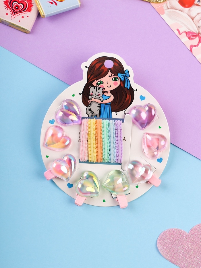 Набор для волос "Аделия" (10 резинок 3 см, 4 зажима 3 см) сердце, розовый