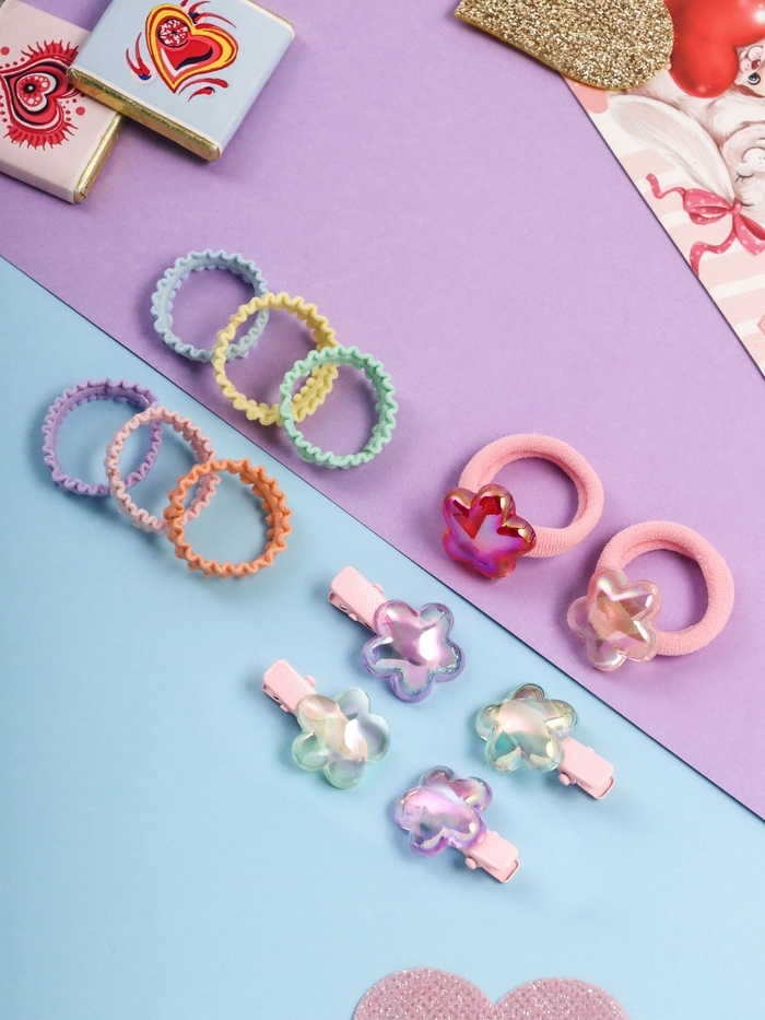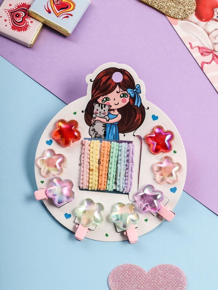 Набор для волос "Аделия" (10 резинок 3 см, 4 зажима 3 см) цветок, розовый