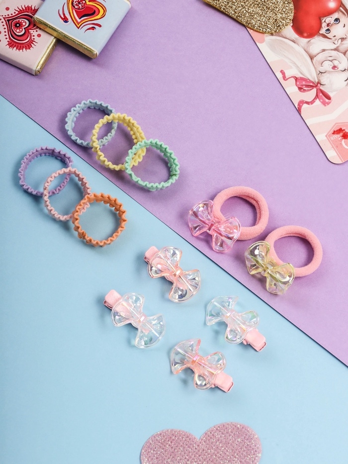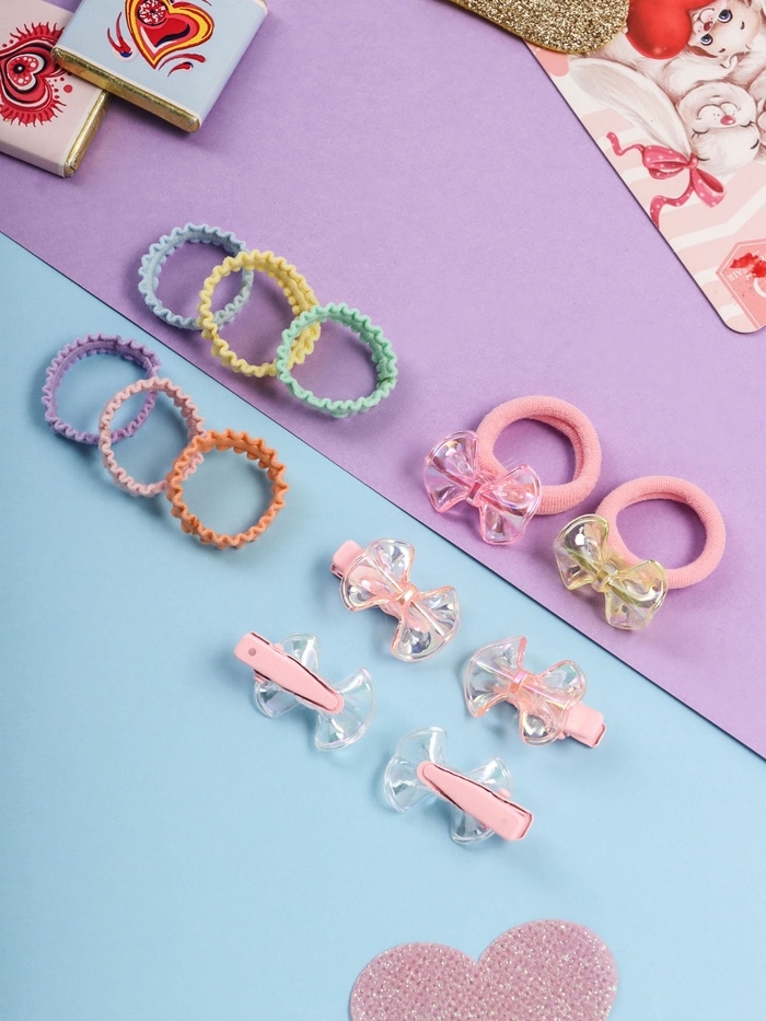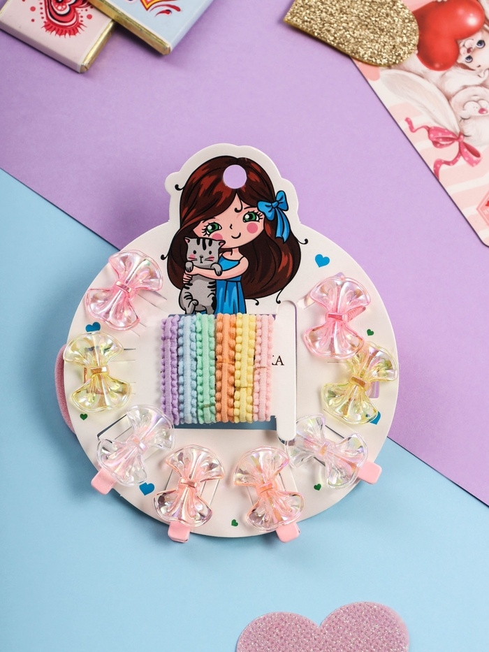 Набор для волос "Аделия" (10 резинок 3 см, 4 зажима 3 см) бантик, розовый