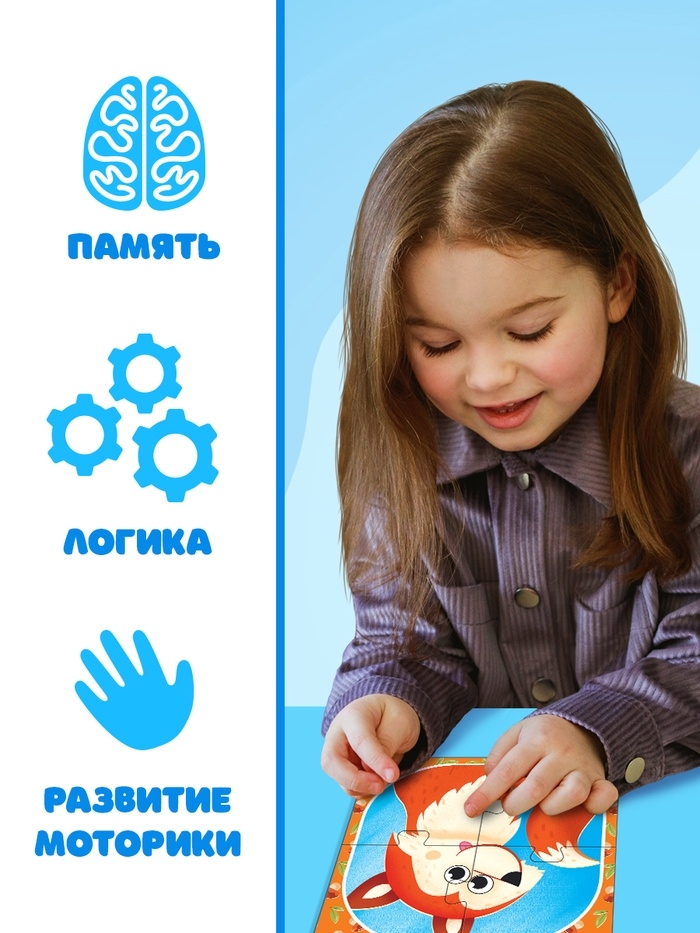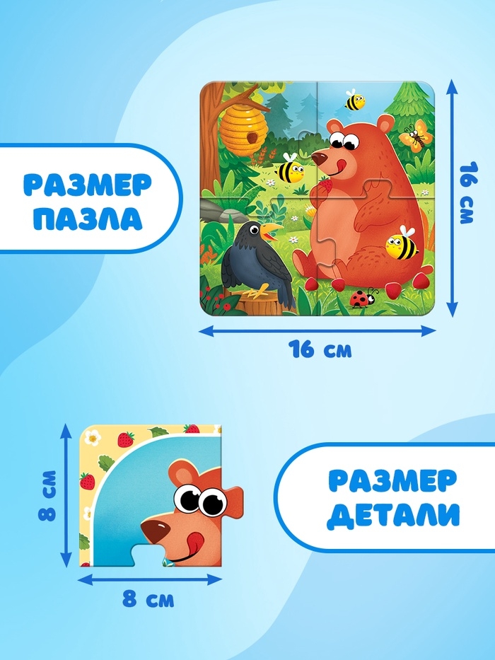 Пазлы 4 в 1, двусторонние "Лесные животные"