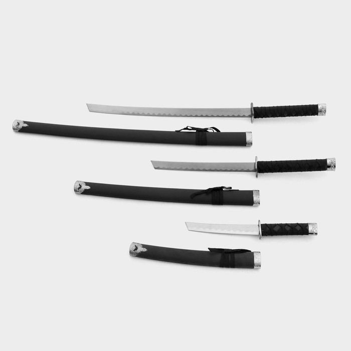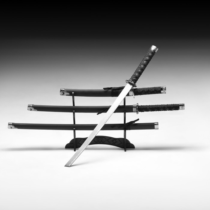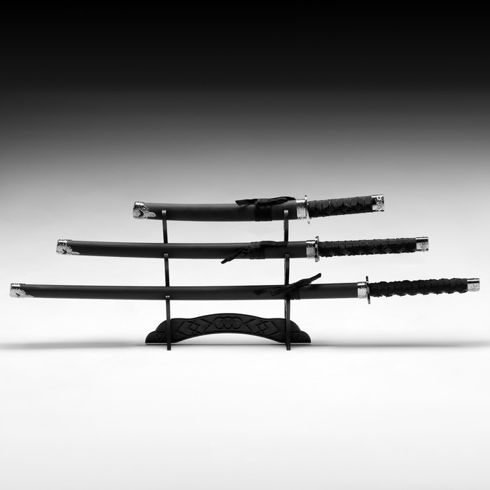 Сув. изделие катаны 3в1 на подставке, ножны кожзам, матовая, черная 47/70/89см