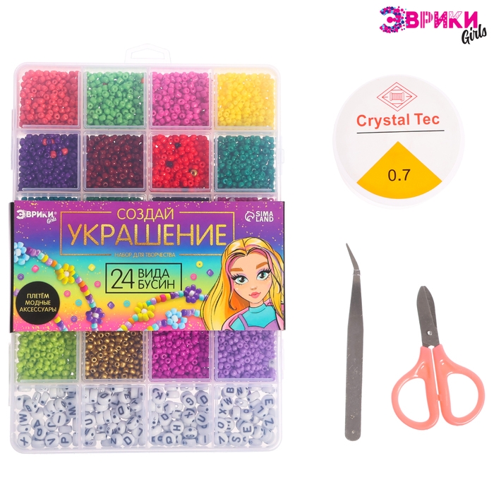 Набор для создания украшений, 24 вида бусин, леска, ножницы