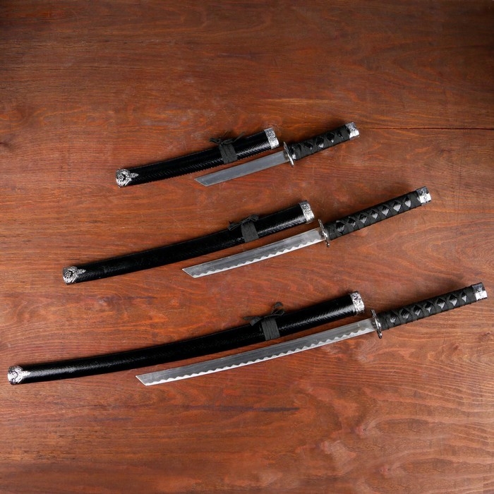 Сувенирное оружие "Катаны Тайго" 3в1, набор на подставке, 47см/79см/105см, ножны под тигра