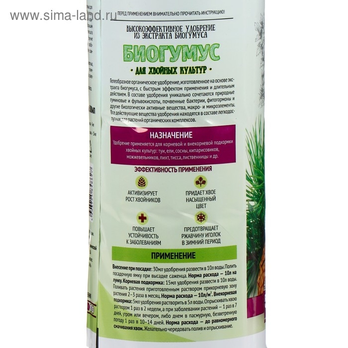 Органическое удобрение Биогумус "Садовые рецепты" для хвойных культур, 0,5 л