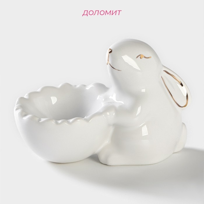 Подставка для яйца Доляна «Зайка в золотом», 11×6×8 см, цвет белый