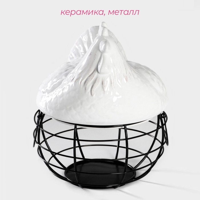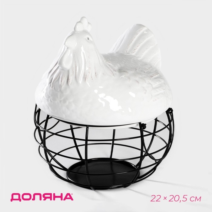 Ёмкость для хранения Доляна «Курочка» - незаменимая вещь на кухне любой хозяйки. Основание ёмкости изготовлено из металла, фигурная крышка выполнена из керамики. Благодаря оригинальному дизайну, изделие гармонично дополнит сервировку стола, а также прекрасно подойдёт в качестве подарка на любой праздник, в том числе на Пасху.