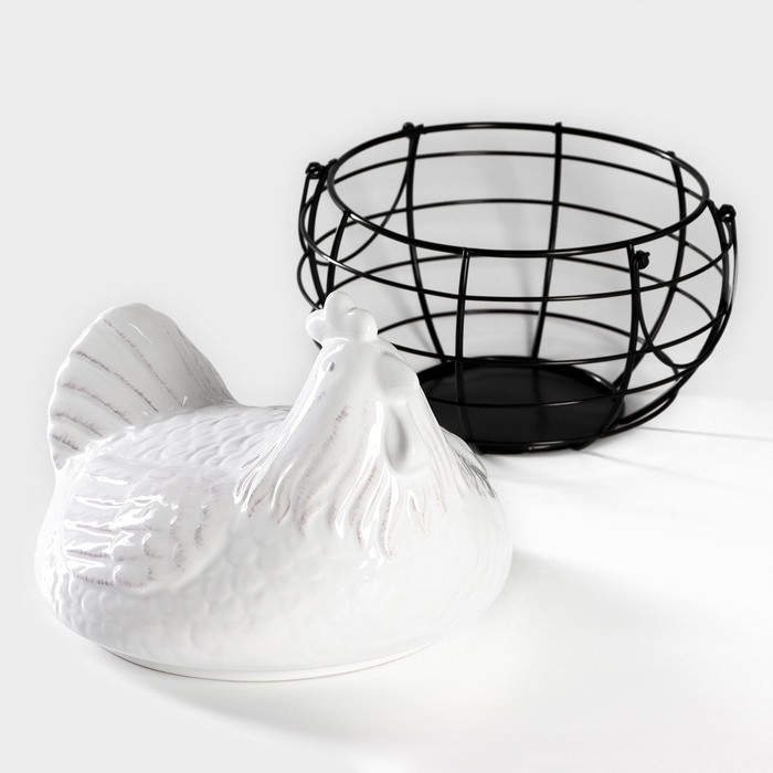 Ёмкость керамическая для хранения Доляна «Курочка», 22×20,5 см, цвет белый
