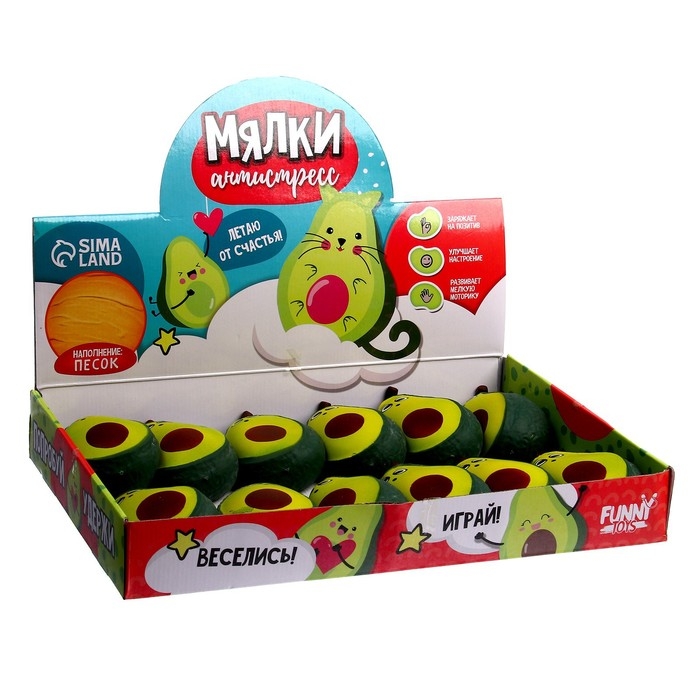 Антистресс сквиш мялка «Авокадо», с песоком, в шоубоксе, тянучка