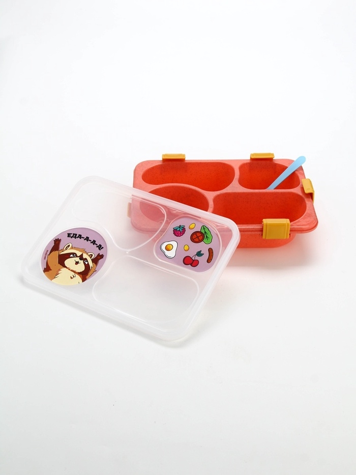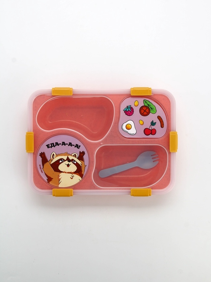 Ланч - бокс с 4 секциями «Еда!», 23 х 17 х 5,5 см, розовый
