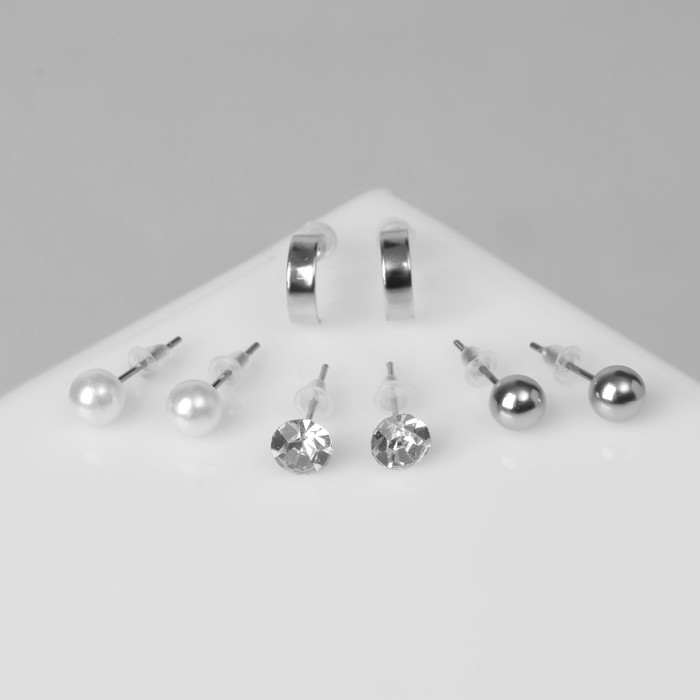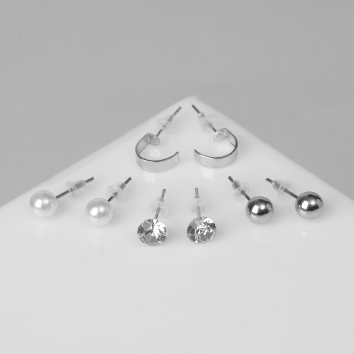 Пусеты 4 пары «Романтика» кольца, цвет белый в серебре