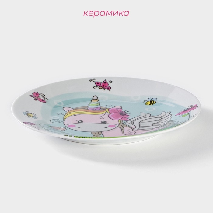 Тарелка керамическая Доляна «Единорожка», d=17,5 см, цвет белый
