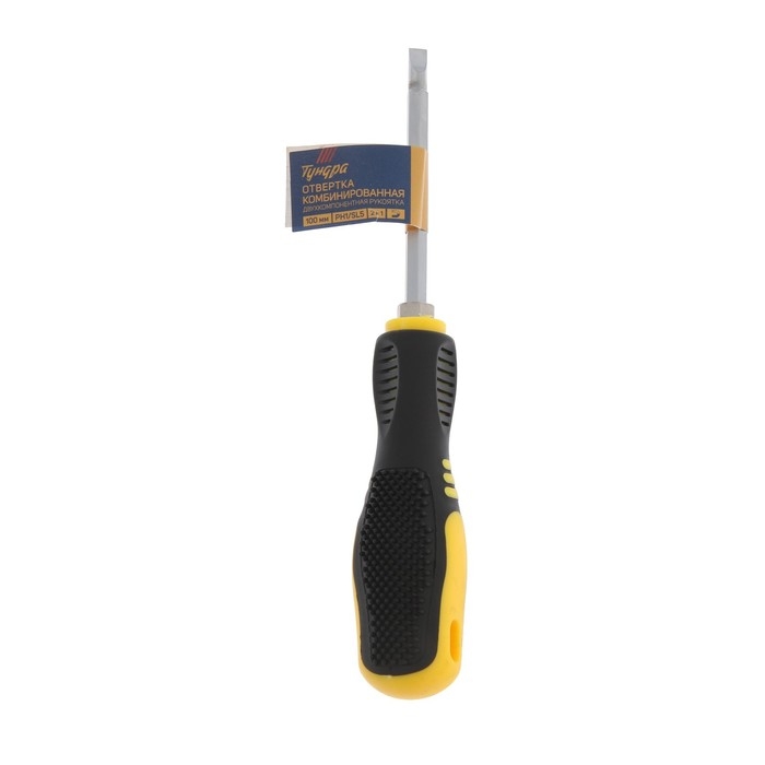 Отвертка комбинированная ТУНДРА, 2 в 1, хром, магнит, 2К рукоятка, PH1/SL5 х 100 мм