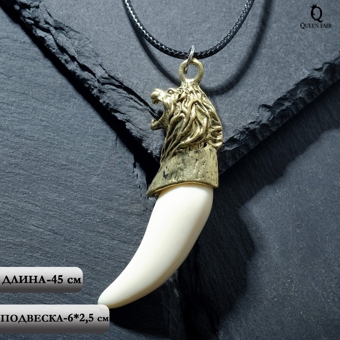 Кулон унисекс «Клык льва», цвет белый в чернёном золоте на чёрном шнурке, 45 см