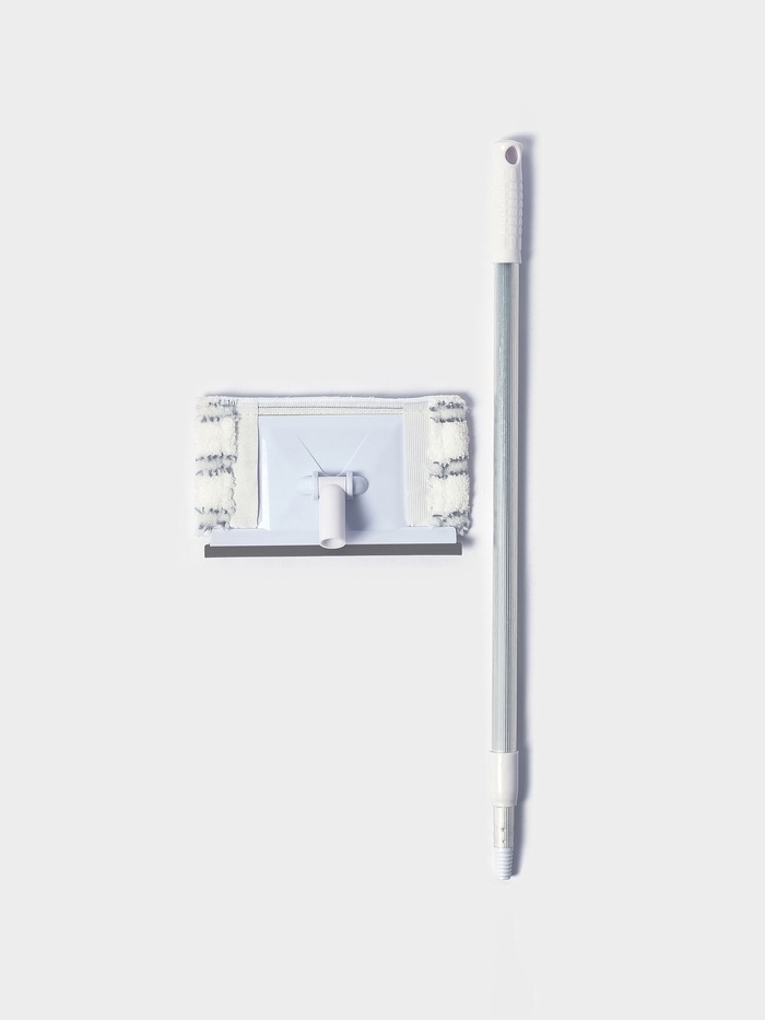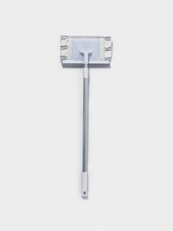- Окономойка оснащена телескопическим черенком, вы сможете дотянуться даже до труднодоступных мест.