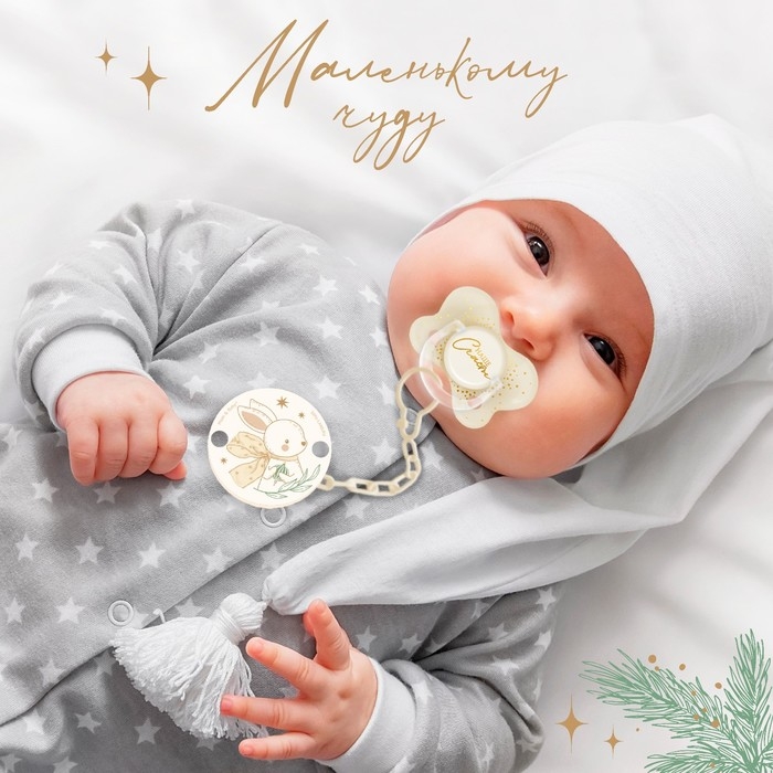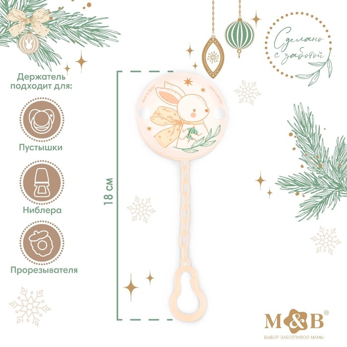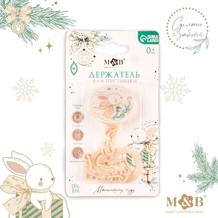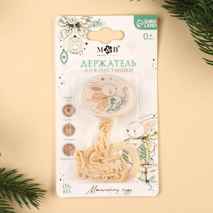 Держатель для соски - пустышки «Новогодний зайчонок», на цепочке, цвет бежевый, подарочная упаковка