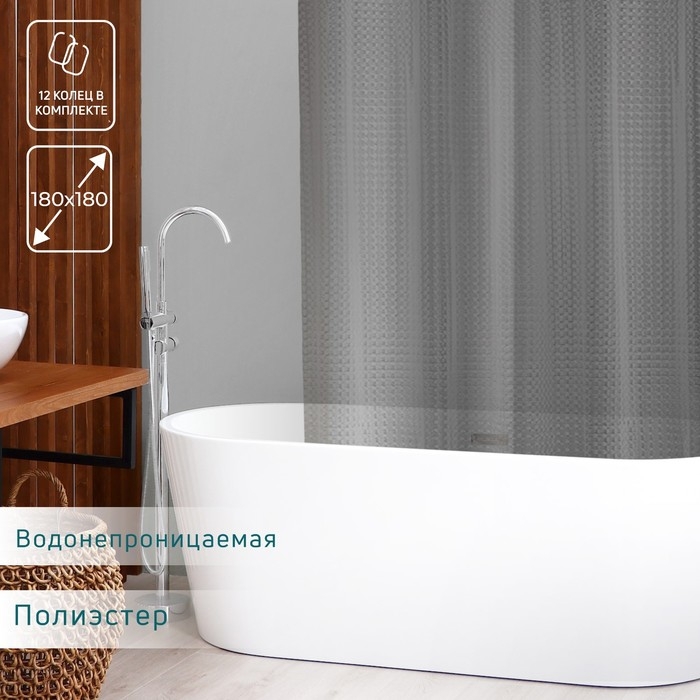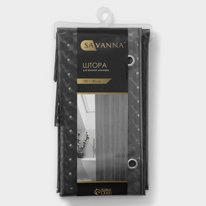 Штора для ванной SAVANNA «Квадраты», 180×180 см, PEVA, цвет серый