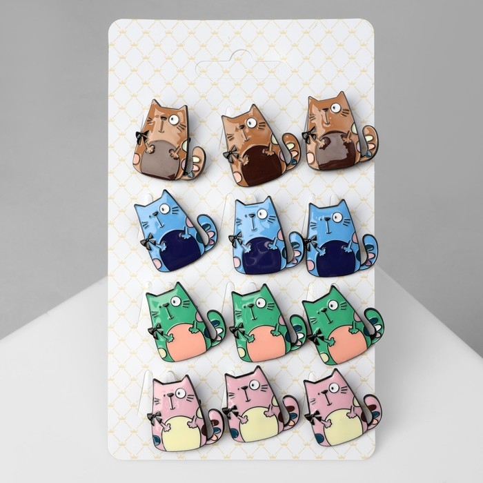 Брошь «Котик» мультяшный, цвет МИКС в чёрном металле (неделимая фасовка 12 шт., цена за шт.)