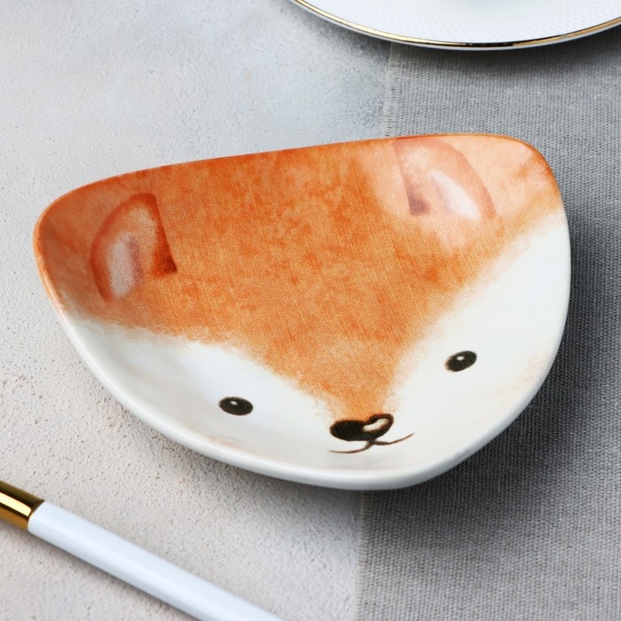 Тарелка керамическая «Лисичка», 13.5 х 13.5 см, цвет белый