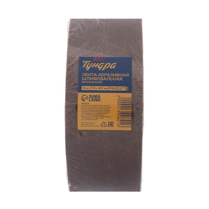Лента абразивная бесконечная ТУНДРА, на тканевой основе, 75 х 457 мм, Р100, 10 шт.