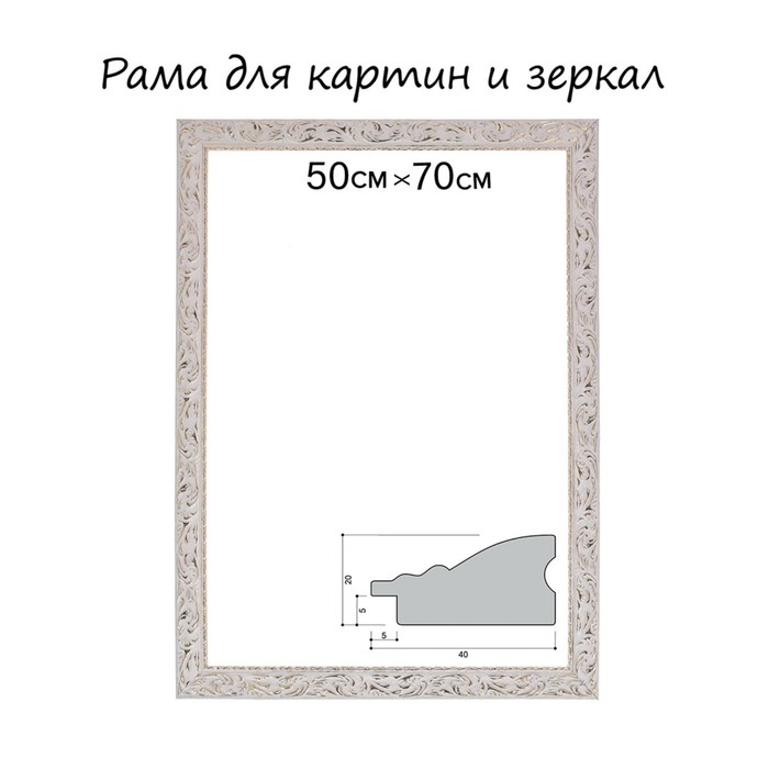 Рама для картин (зеркал) 50 х 70 х 4 см, дерево "Версаль", бело-золотая