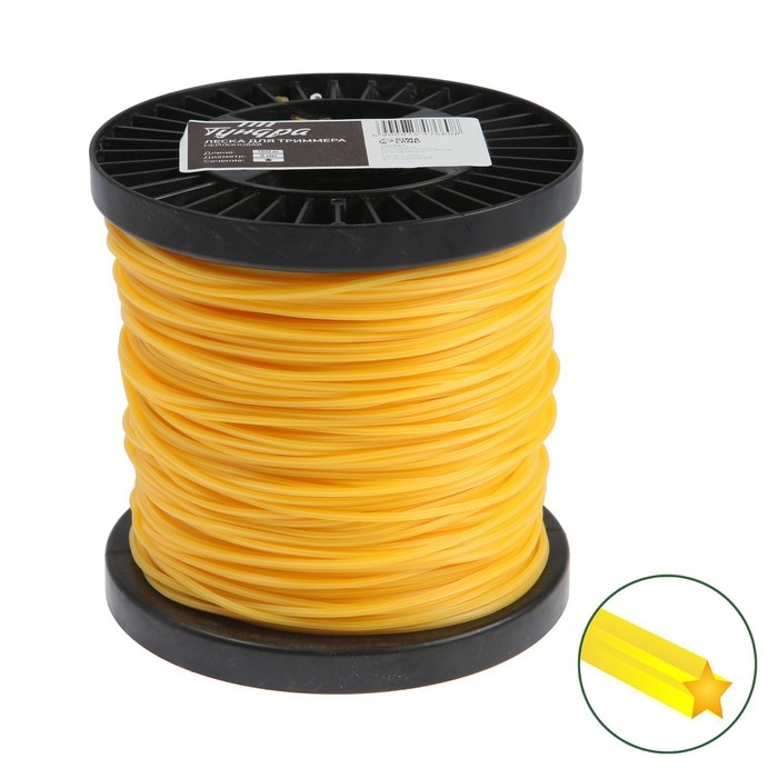 Сечение лески имеет форму звезды, что обеспечивает эффективную резку травы и другой растительности. Не имеет витой формы и жилы.