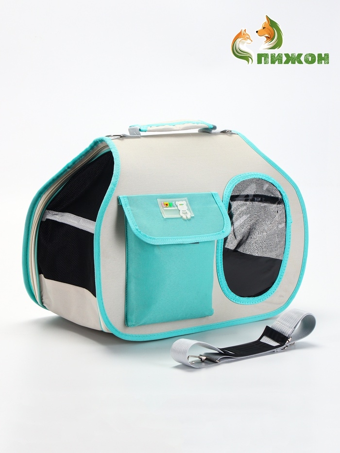 Сумка-переноска с органайзером и окном, 45 х 24 х 33 см, бело-мятная