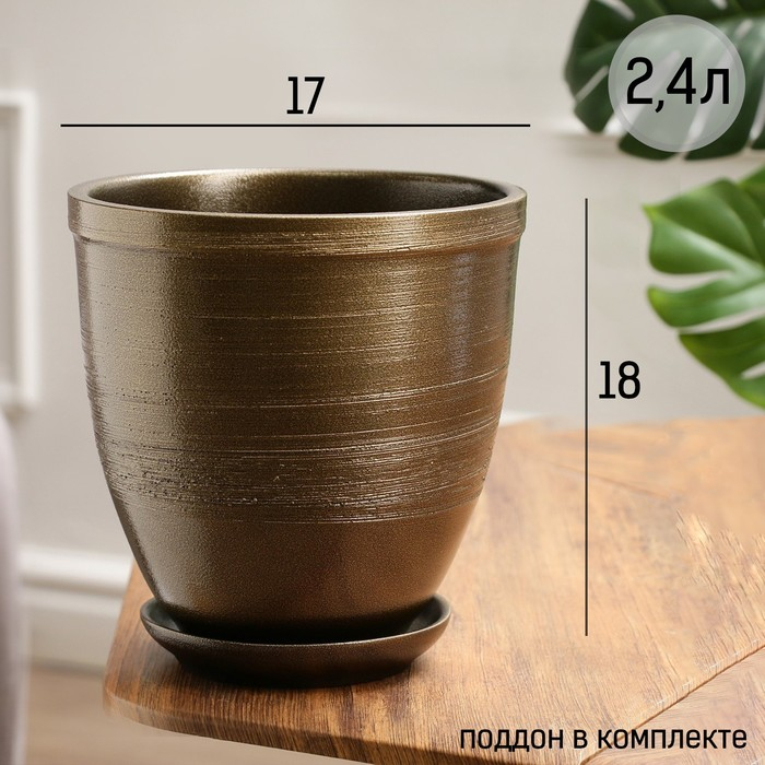 Горшок цветочный "Черное золото" с поддоном, 2,4л