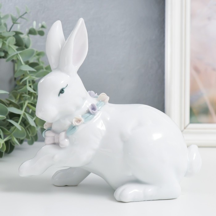 Сувенир керамика "Белая зайка с розовым бантом и розочками" 15х8х15 см