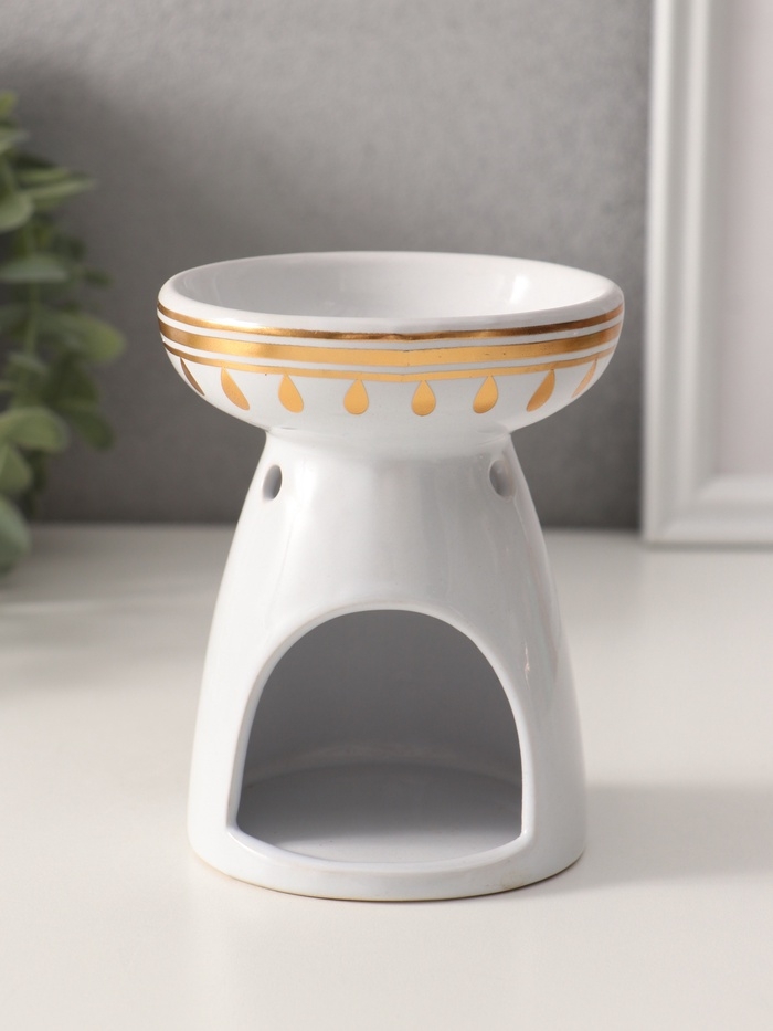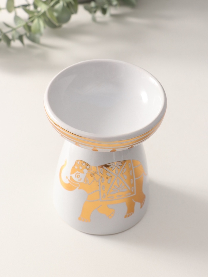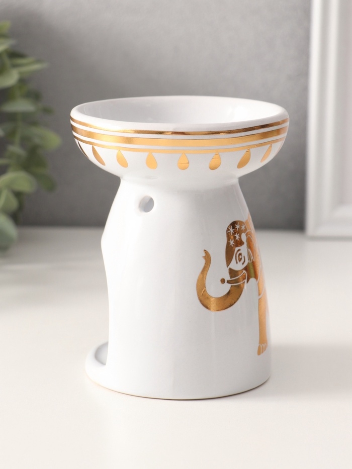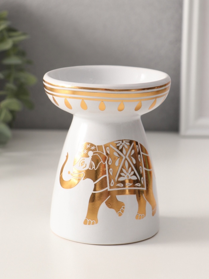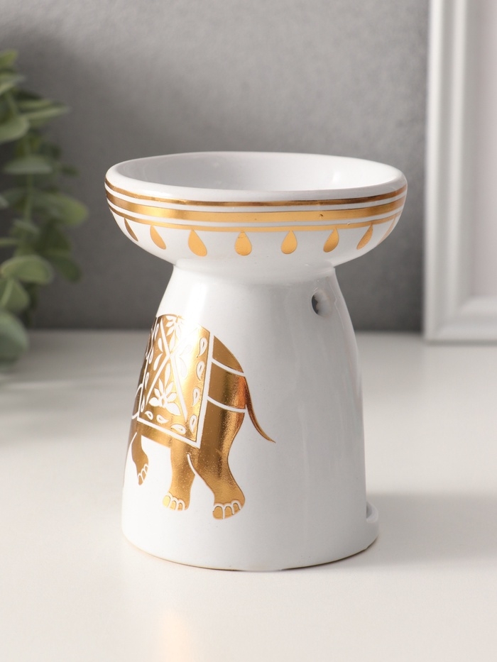 Аромалампа керамика "Индийский слон" белая с золотом 9,3х9,3х11,8 см