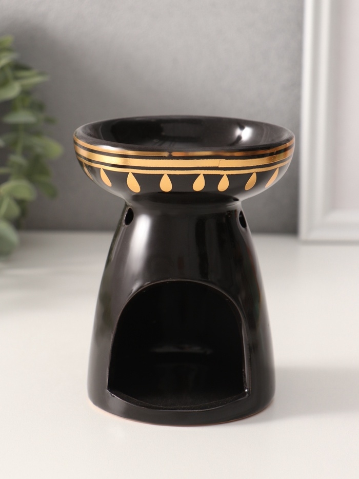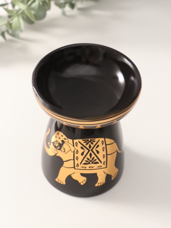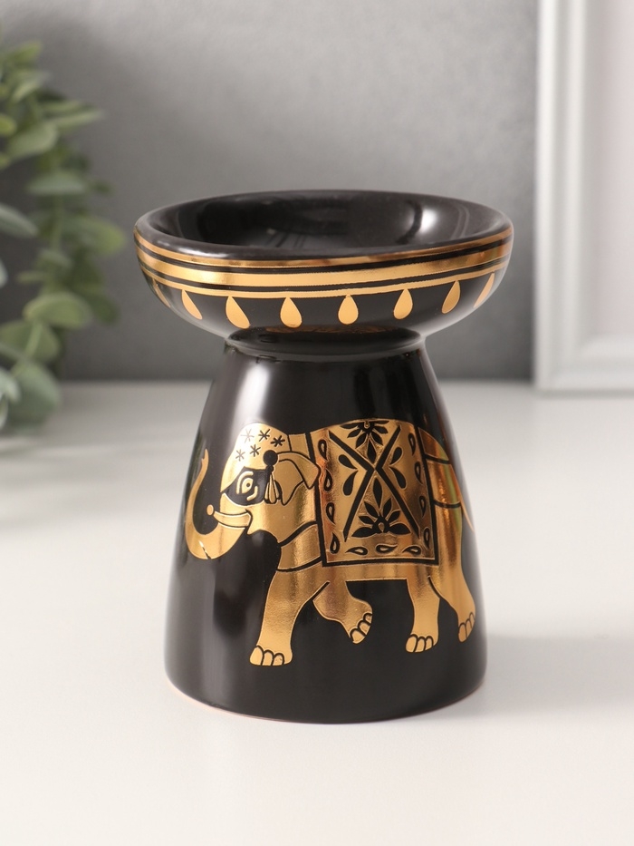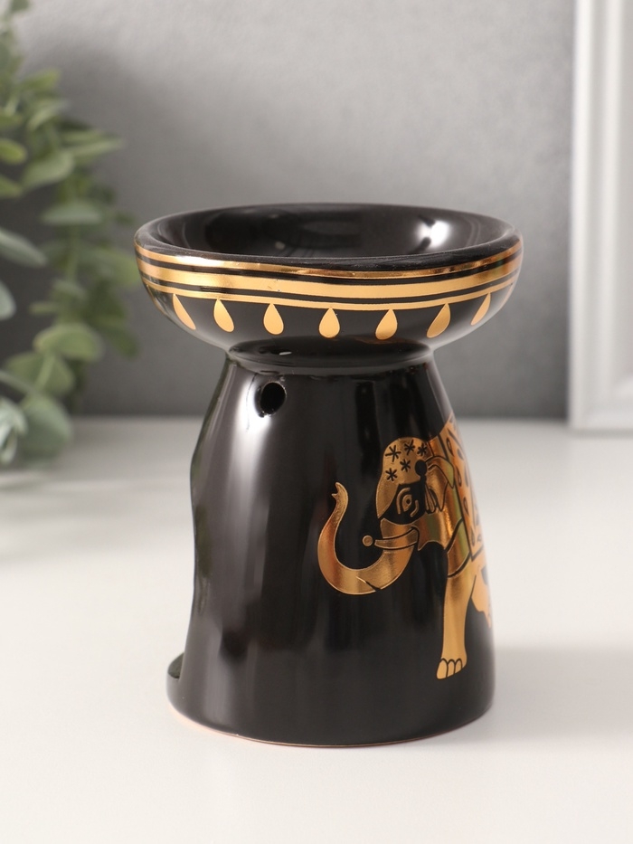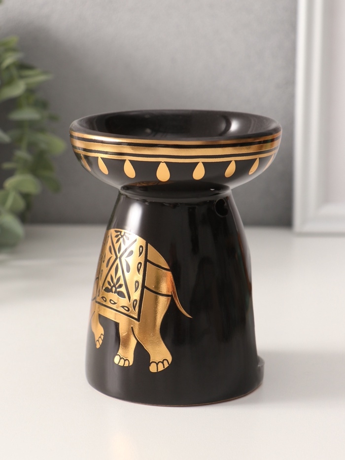 Аромалампа керамика "Индийский слон" чёрная с золотом 9,3х9,3х11,8 см