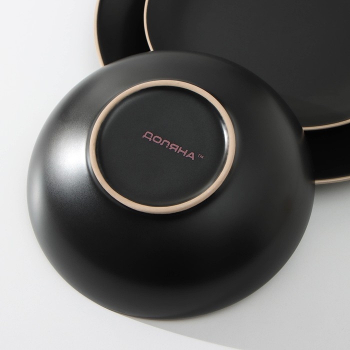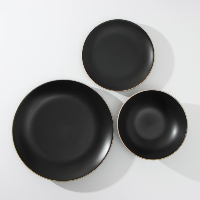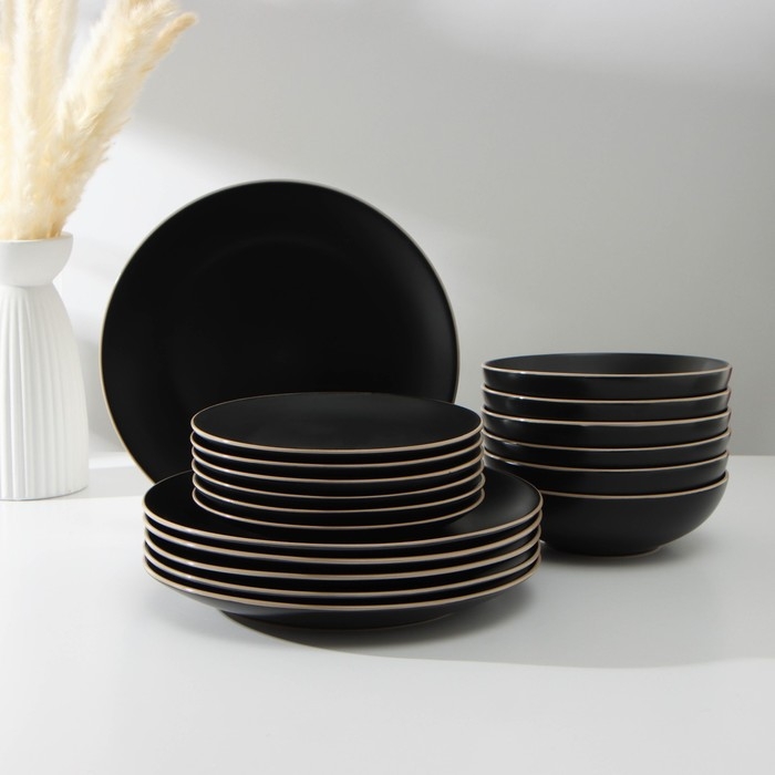 Набор тарелок керамических Доляна «Ваниль», 18 предметов: 6 тарелок d=19 см, 6 тарелок d=27 см, 6 мисок d=19 см, цвет чёрный