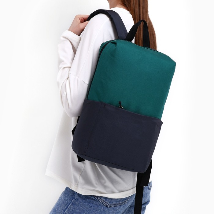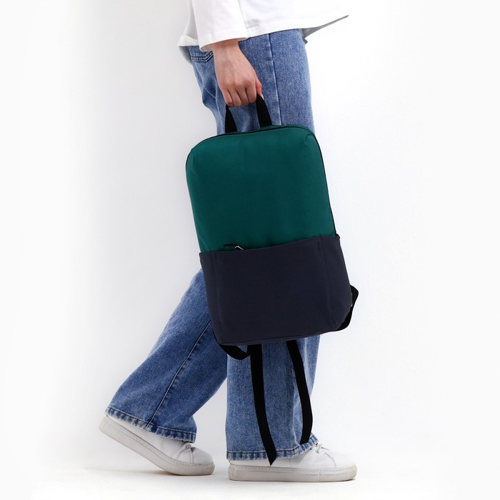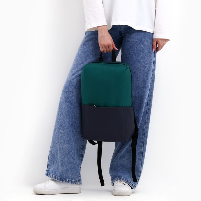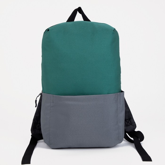 Рюкзак школьный текстильный с карманом, цвет серый/зелёный, 22х13х30 см