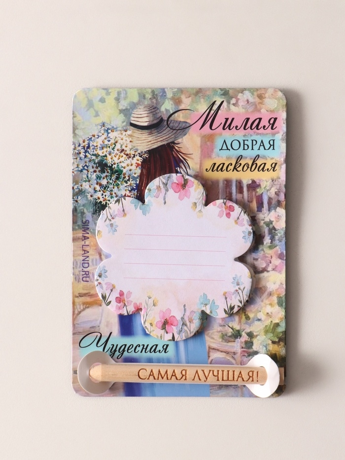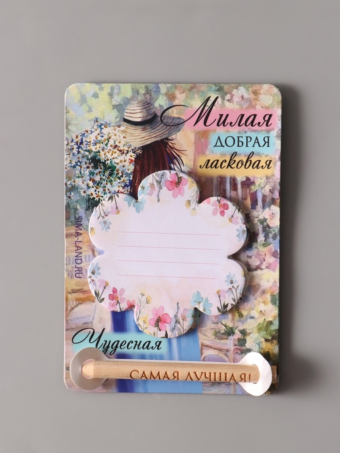 Магнит с блоком для записей и карандашом "Милая, добрая, ласковая" 9х13 см