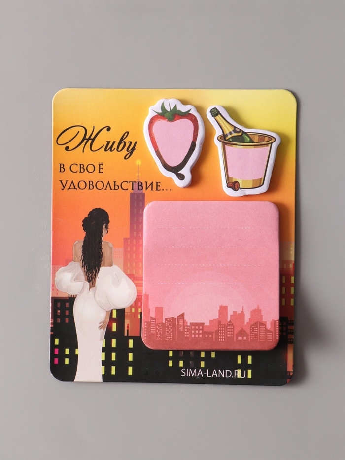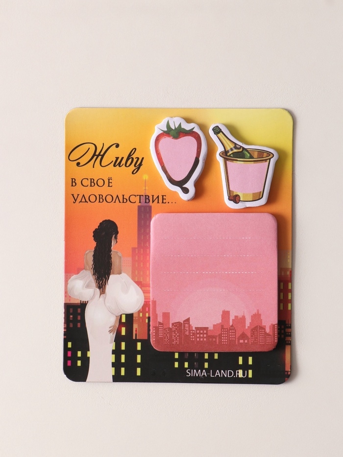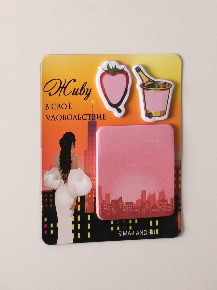 Магнит с блоком для записей и стикерами "Живу в своё удовольствие..." 10х12 см