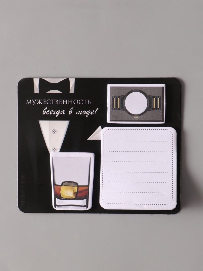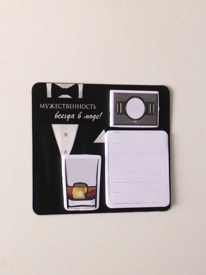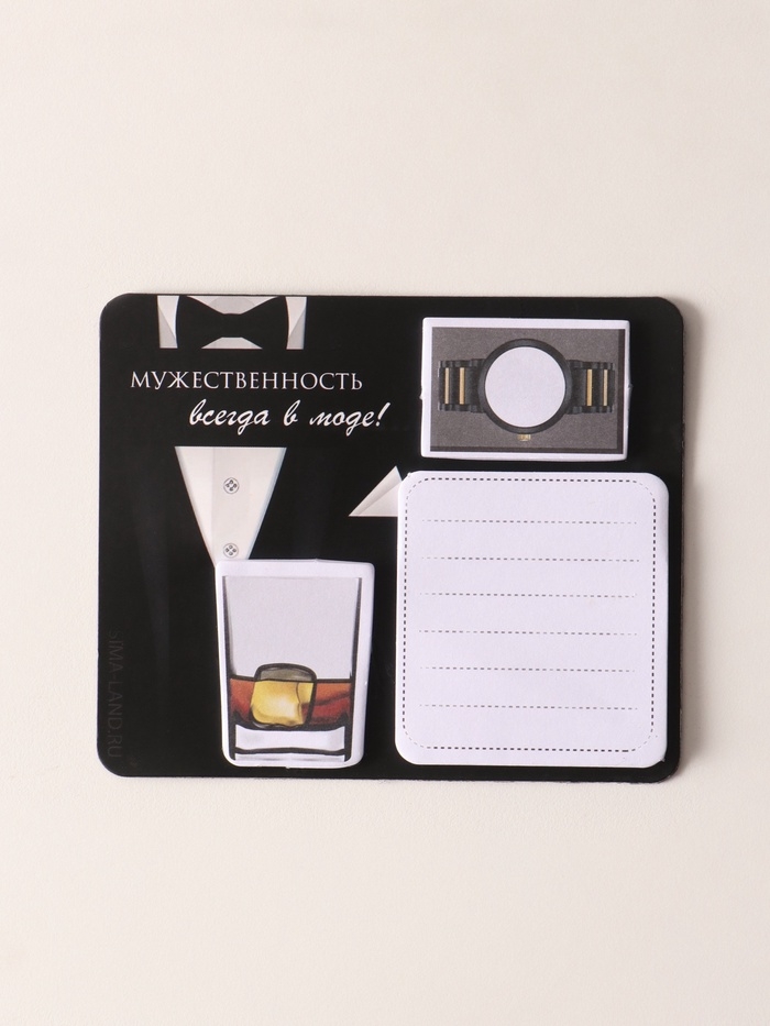 Магнит с блоком для записей и стикерами "Мужественность всегда в моде!" 10х12 см