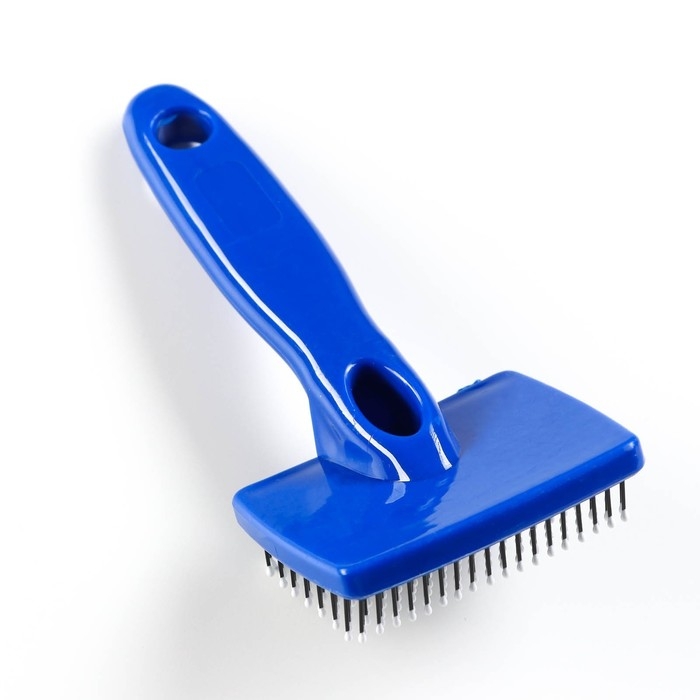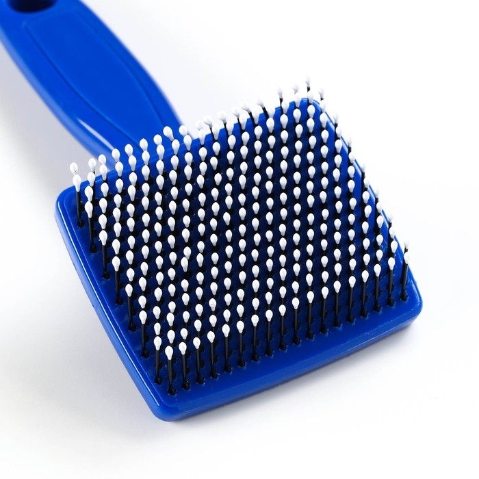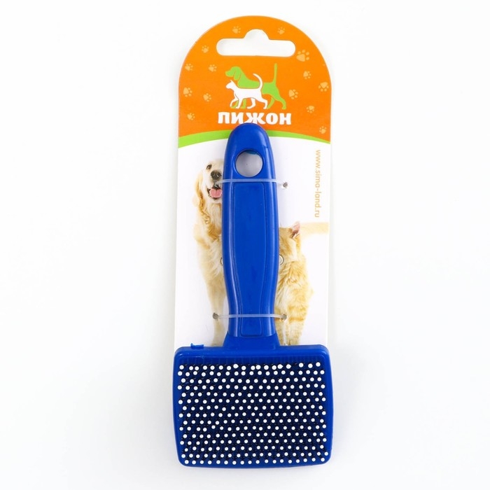 Пуходерка пластиковая мягкая с закругленными зубьями, малая, 6 х 13,5 см, синяя