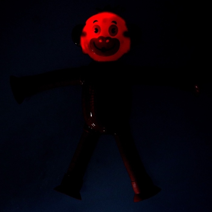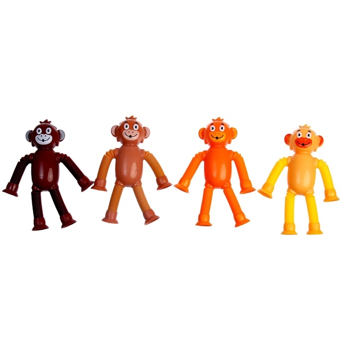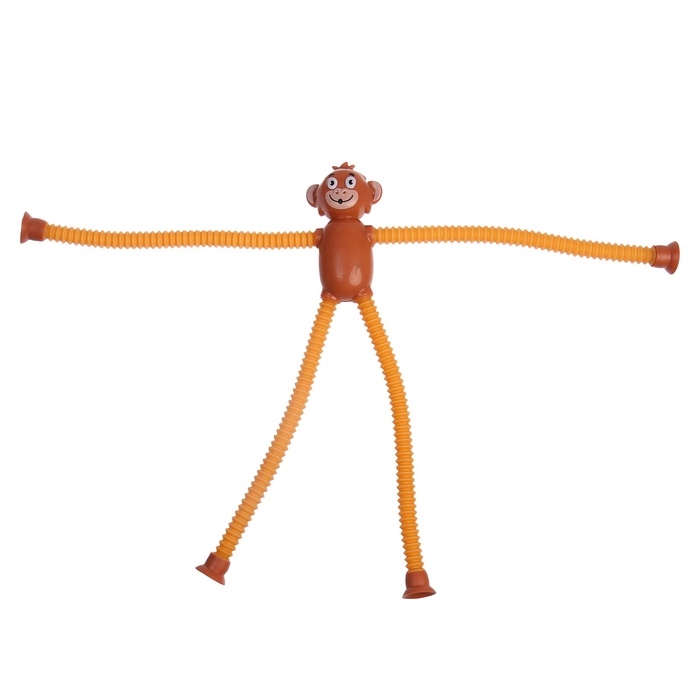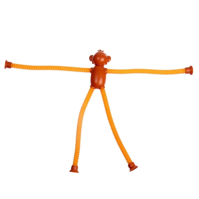 - Трубки антистресс, из которых состоят конечности обезьянки – жесткие и прочные. Их можно растягивать, сгибать, крутить и соединять с помощью присоски между собой