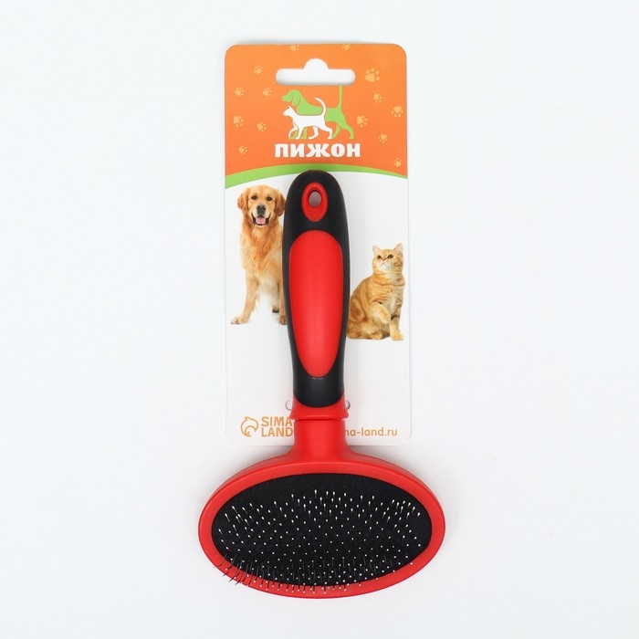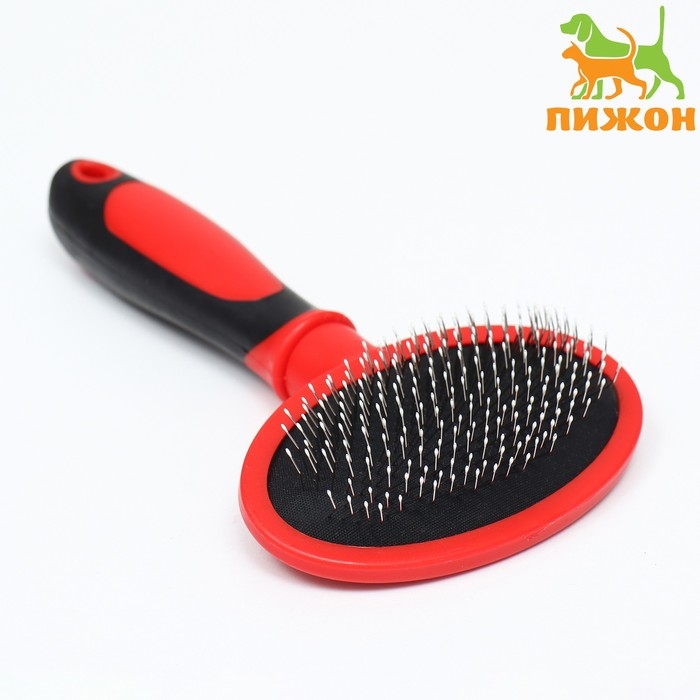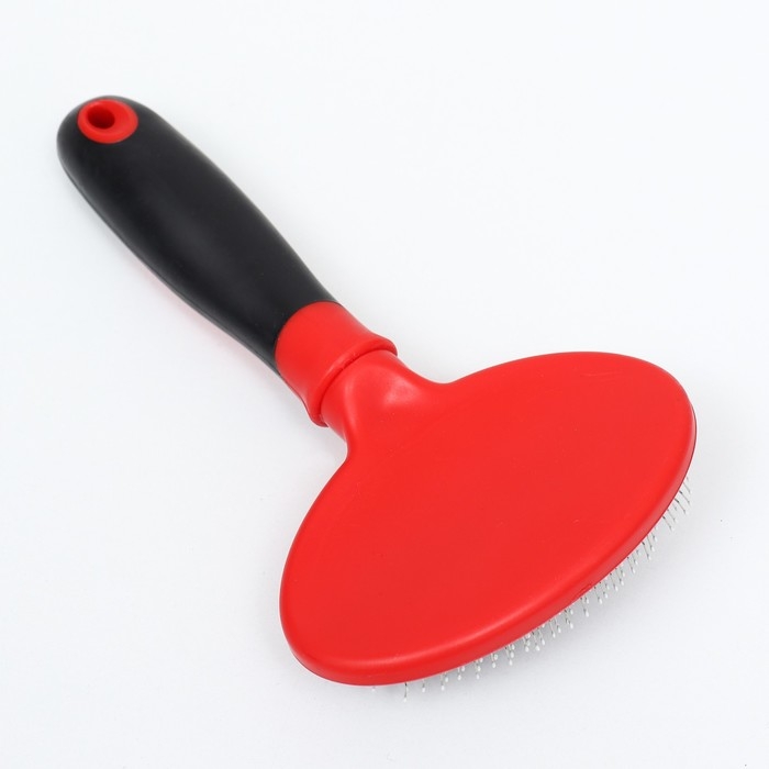 Пуходерка пластиковая мягкая с закругленными зубьями, средняя, 9,5 х 16 см, красная