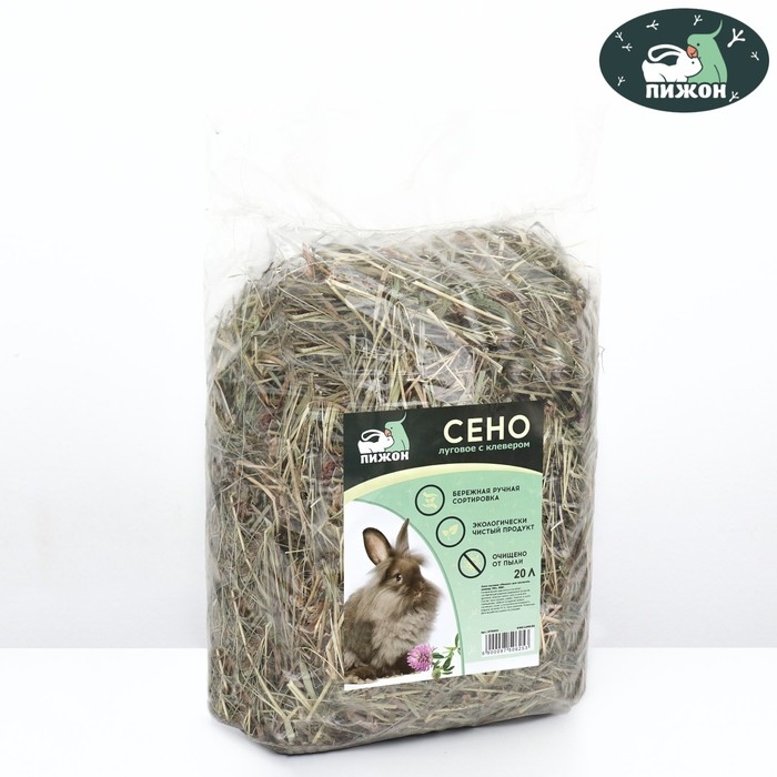 Сено луговое с клевером «Пижон» для грызунов, 20 л, 500 г