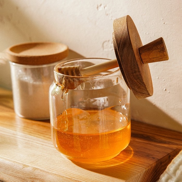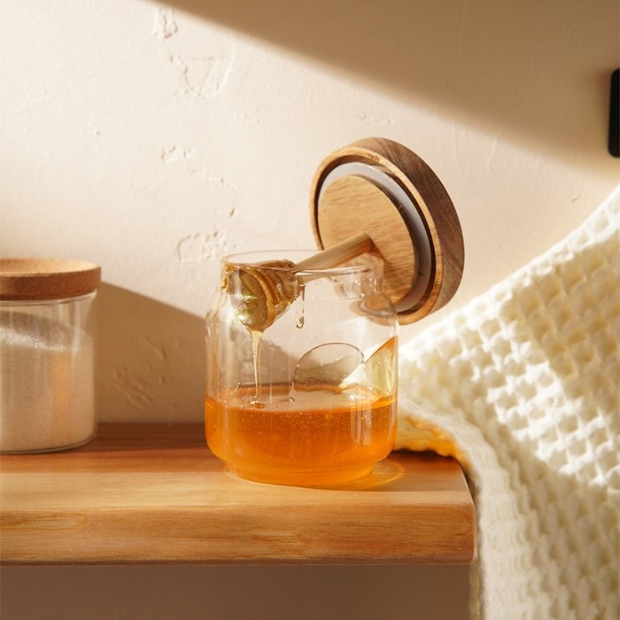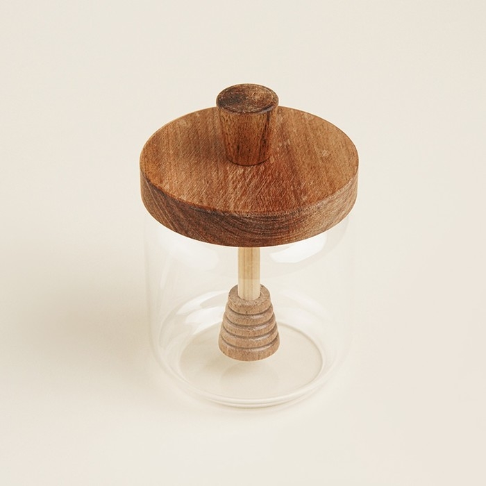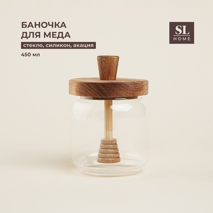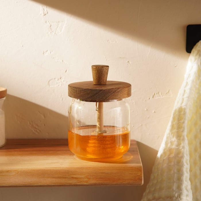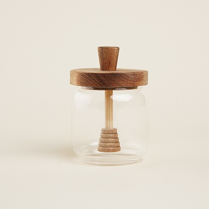 Баночка для меда с крышкой и ложкой из акации SL Home "Южная акация" 450 мл, 9х13,5 см