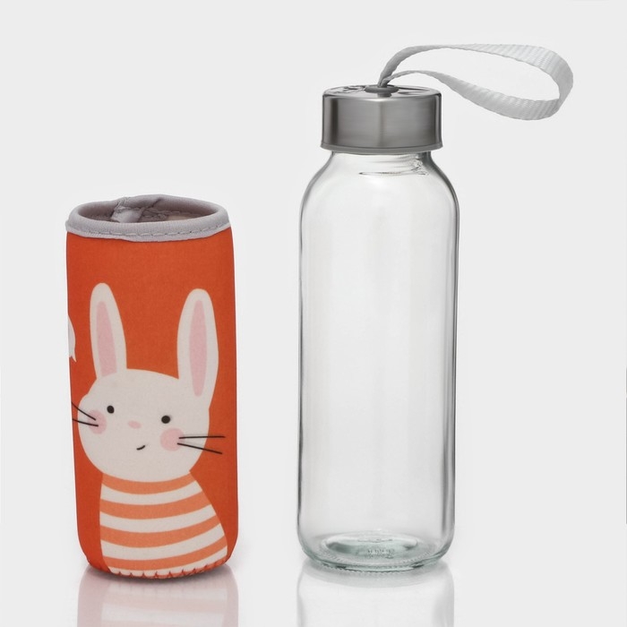 Бутылка для воды стеклянная в чехле «Банни», 300 мл, h=17 см