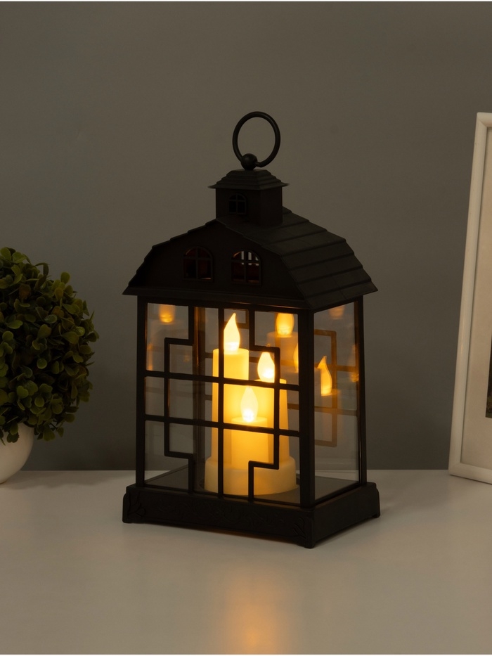 Светодиодная свеча в подсвечнике RISALUX «Дом со свечами», LED-ночник, 1.5 Вт, 3×ААА, 11×18×30 см