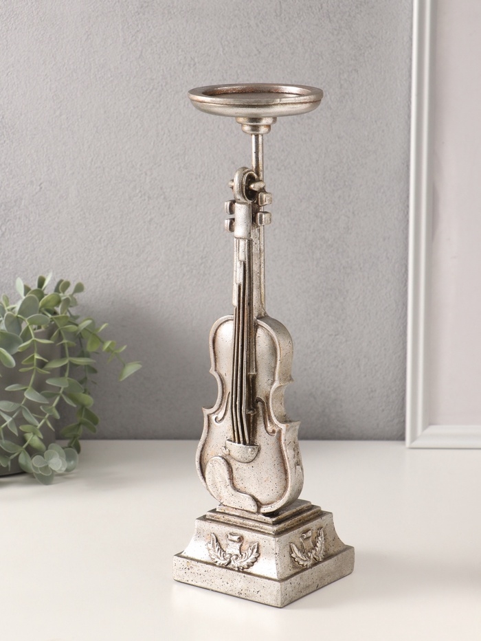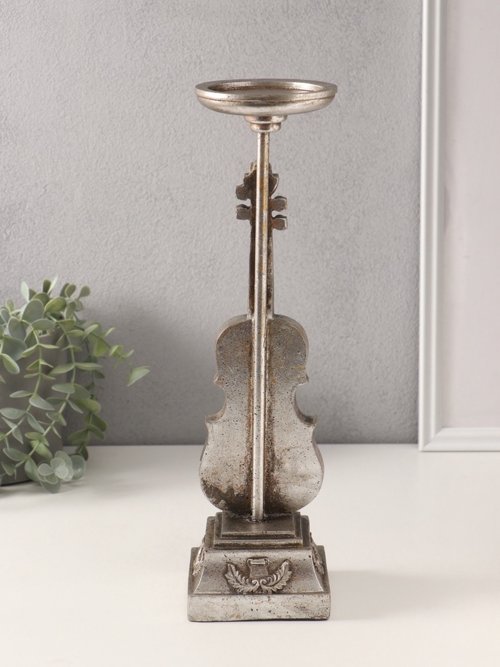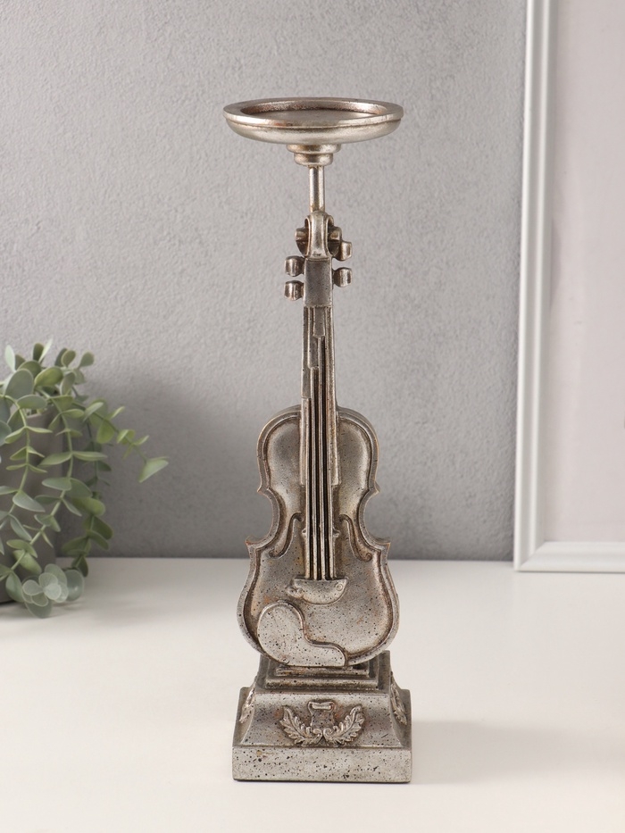 Подсвечник полистоун на 1 свечу "Скрипка" серебро 10х10х36 см