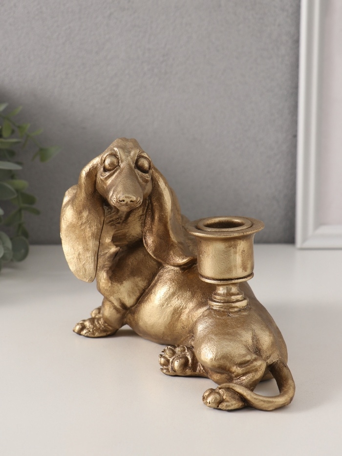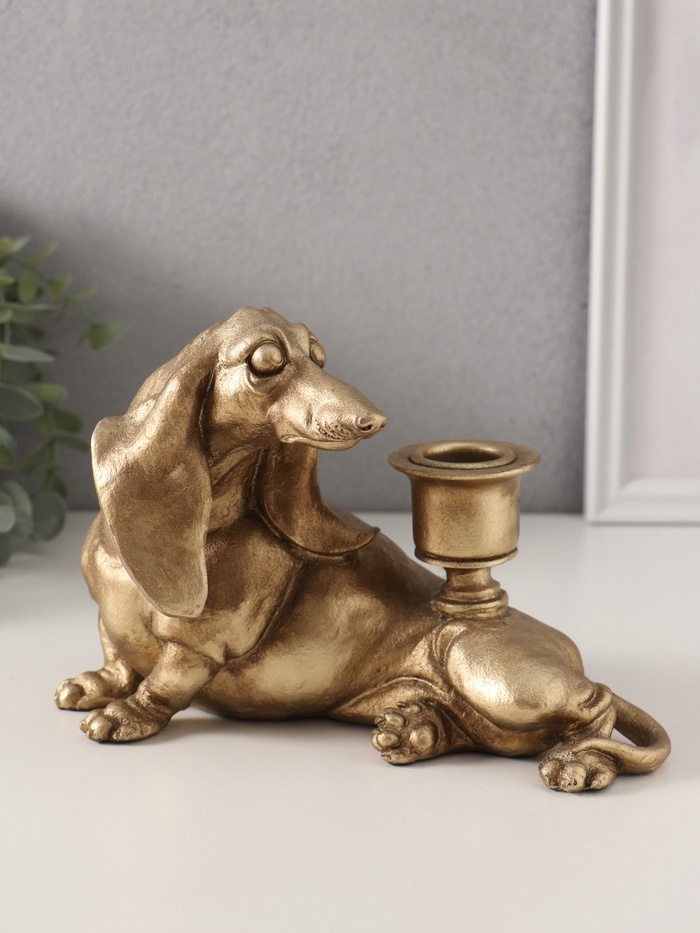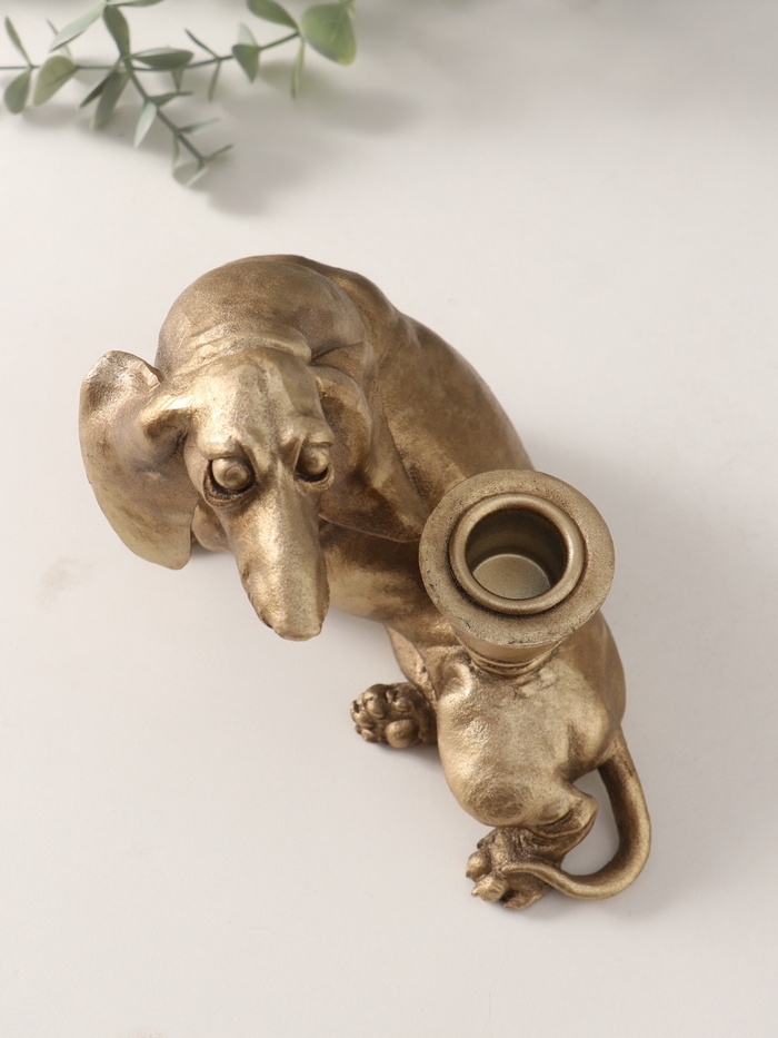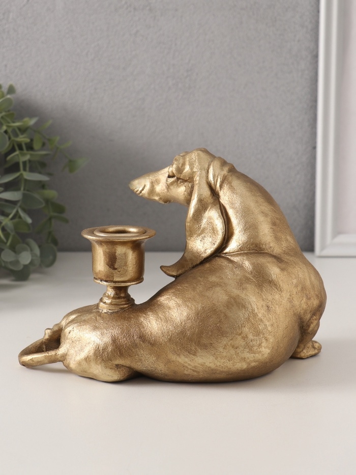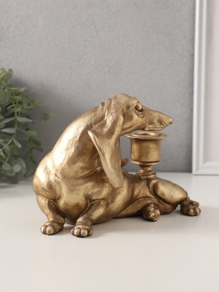 Подсвечник полистоун на 1 свечу "Шарж. Такса" золото 19х11х13 см